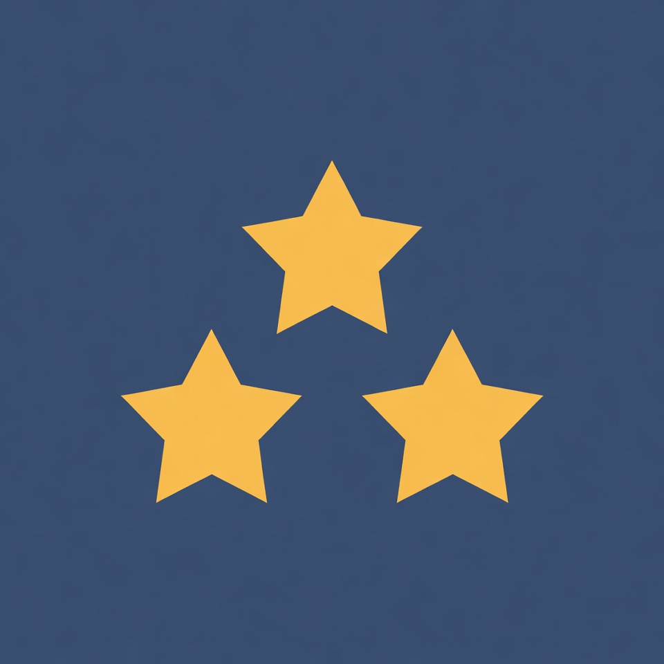 Three yellow stars are placed on a dark blue background. The stars are evenly spaced and appear simple in design.