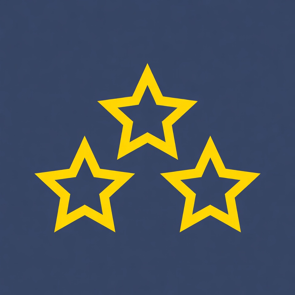 Three yellow stars are arranged on a blue background, creating a simple and bold design. The stars have clear outlines and are evenly spaced.
