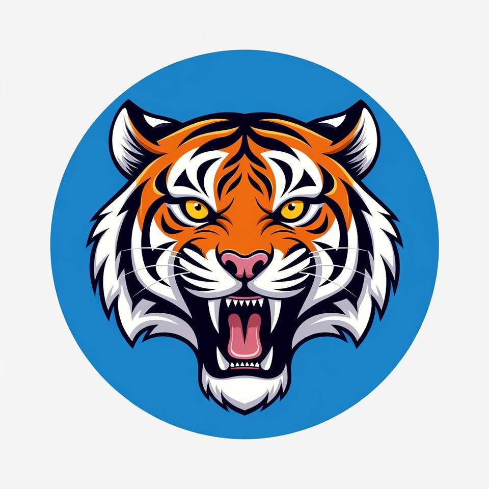 Tiger head in bright blue circle