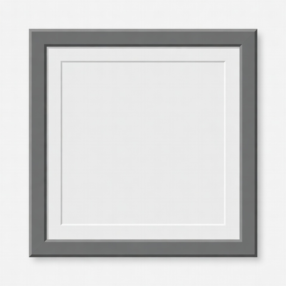 A gray frame sits on a plain background, with no picture inside. It is a basic design that can hold various artworks or images.