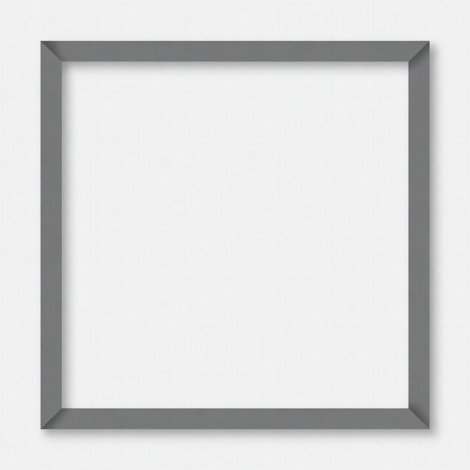 A simple gray frame is placed on a white background. The frame has no contents and provides an open space for creativity.