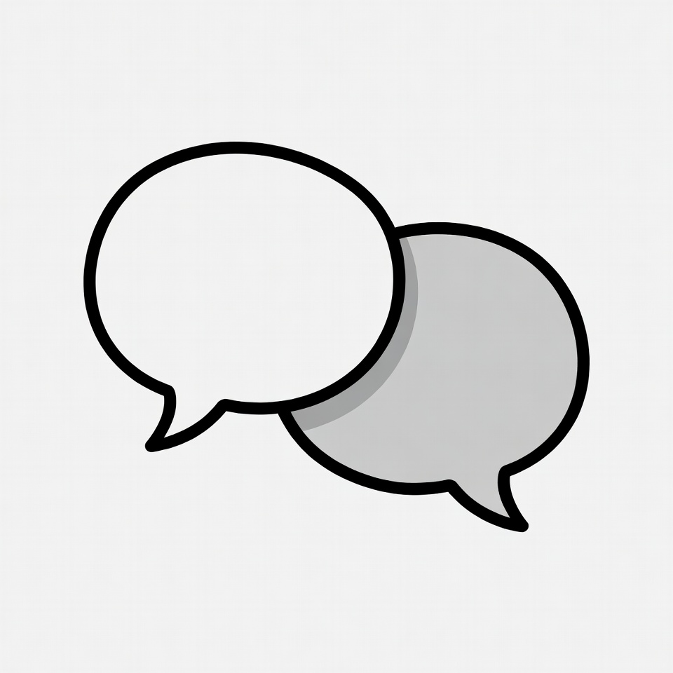 Two speech bubbles in different colors sit side by side on a white background. They appear simple and playful in design.