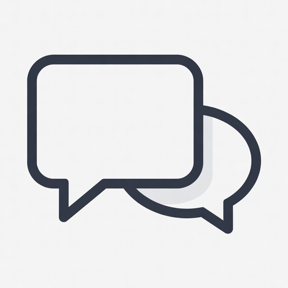Two chat bubbles overlap, showing design concepts for communication. The design highlights interaction and dialogue in a simple manner.