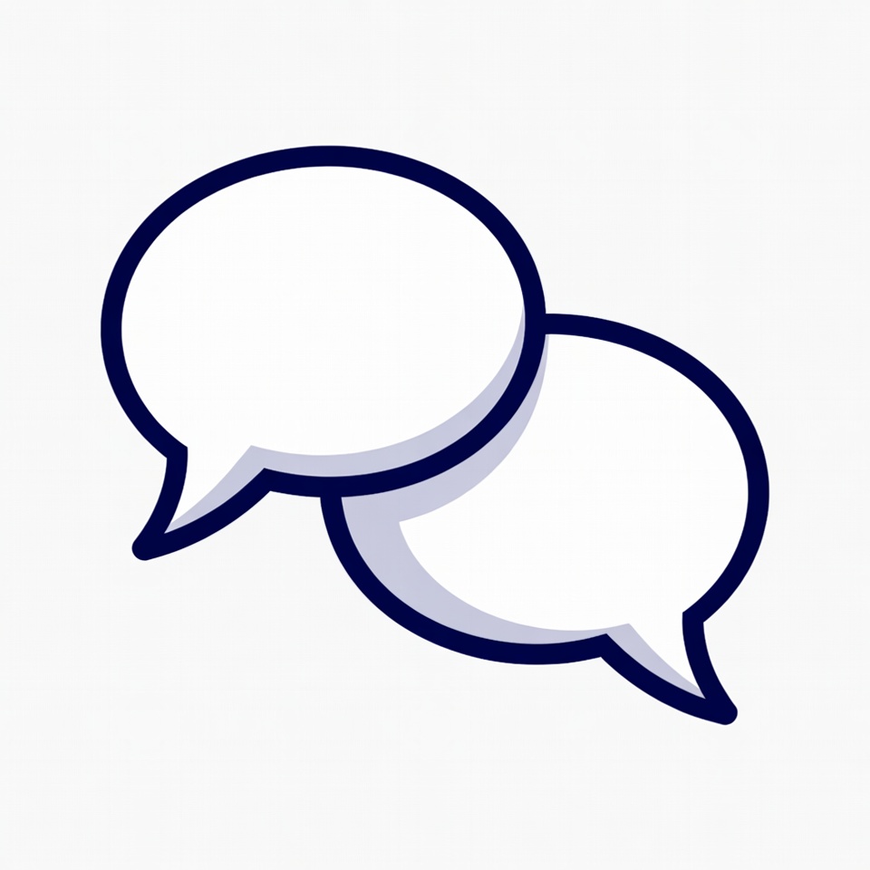Two overlapping speech bubbles with a simple design sit on a light background. The bubbles are empty and ready for text.