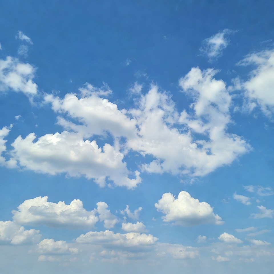 atmosphere, backdrop, blue, calm, clear, clouds, daytime, fluffy, formation, horizon, landscape, nature, outdoor, scenery, shapes, size, sky, sunlight, visibility, weather