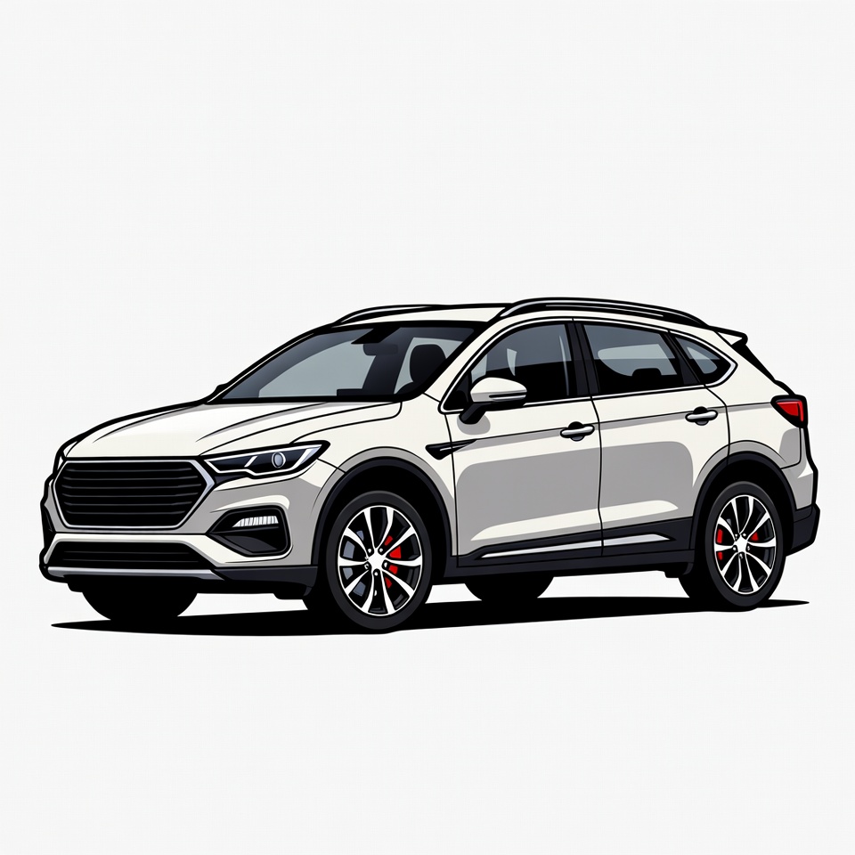 An SUV stands still on a street with a simple design and clear lines. The vehicle shows its modern style and sleek finish.