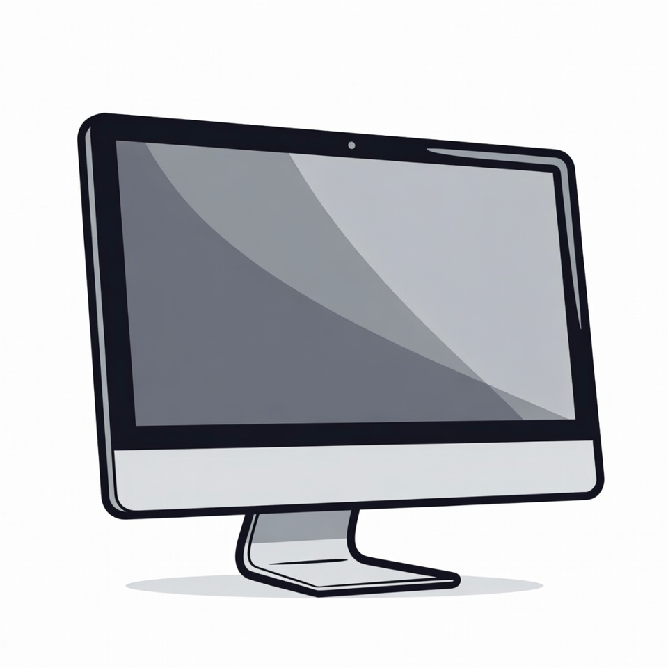 A monitor stands alone on a plain background. The screen is blank, and the design is minimalist, focusing on the computer's form.