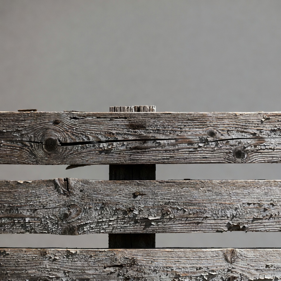 Wooden pallets display their texture and details against a gray background. The wood shows signs of wear and weathering.