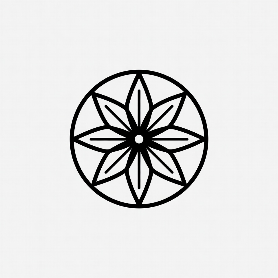 art, artwork, black, circle, creativity, decor, decoration, design, flower, geometric, graphic, illustration, minimalist, nature, outline, pattern, petals, shape, simple, symmetry