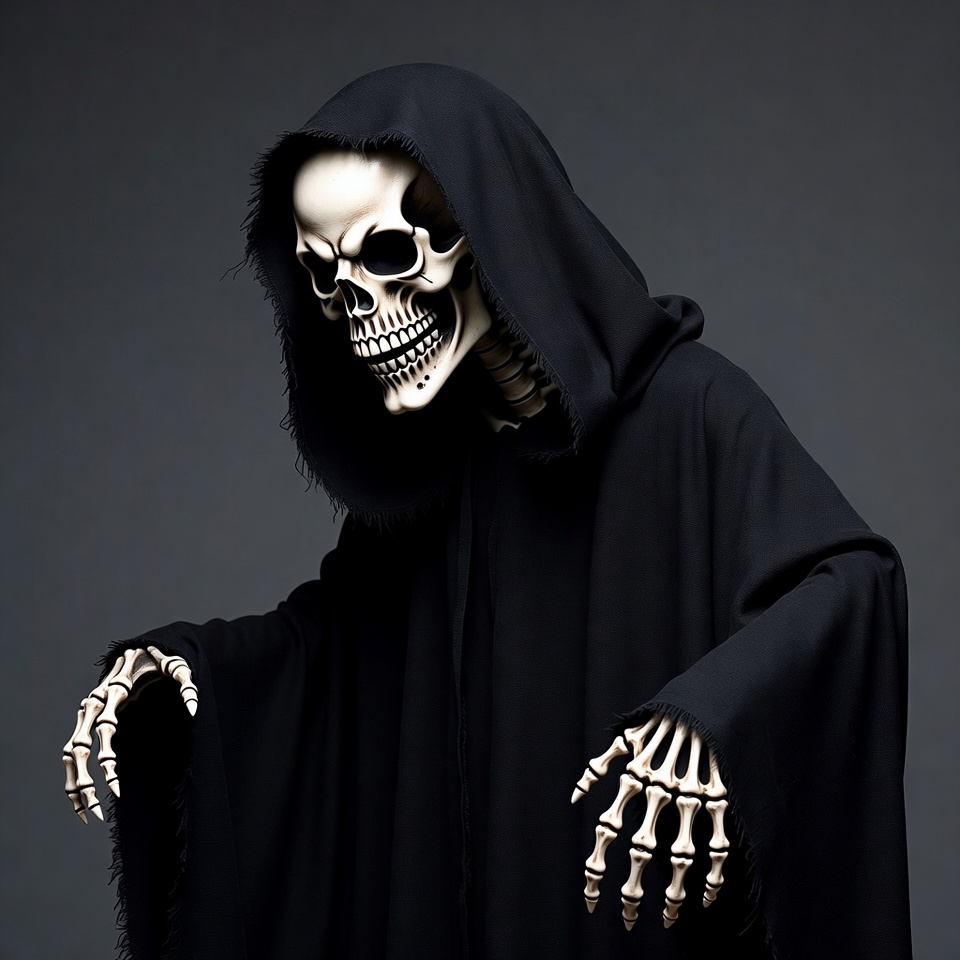 Halloween, Halloween decor, black, bones, character, cloak, costume, creepy, creepy art, dark, eerie, figure, ghost, human form, macabre, monochrome, skeleton, skull, spooky, standing