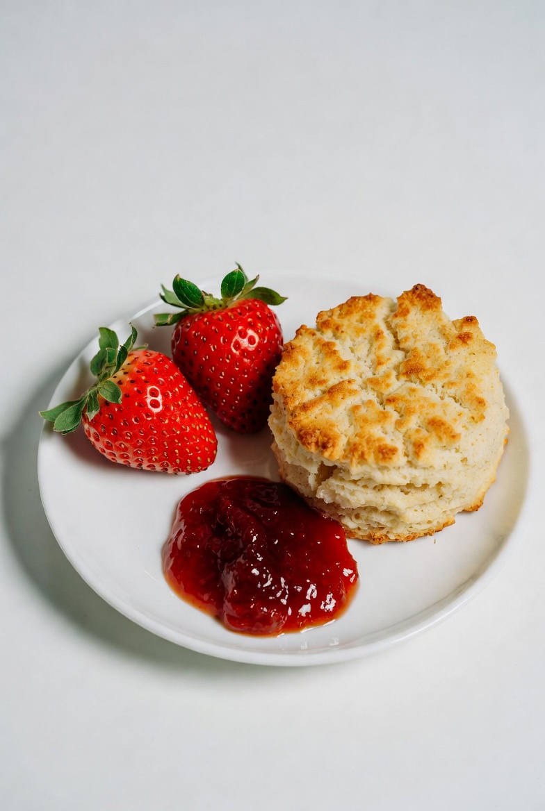 afternoon, baked, biscuit, breakfast, dessert, food, fresh, fruit, homemade, ingredient, jam, meal, morning, plate, serving, simple, snack, strawberries, sweet, tasty