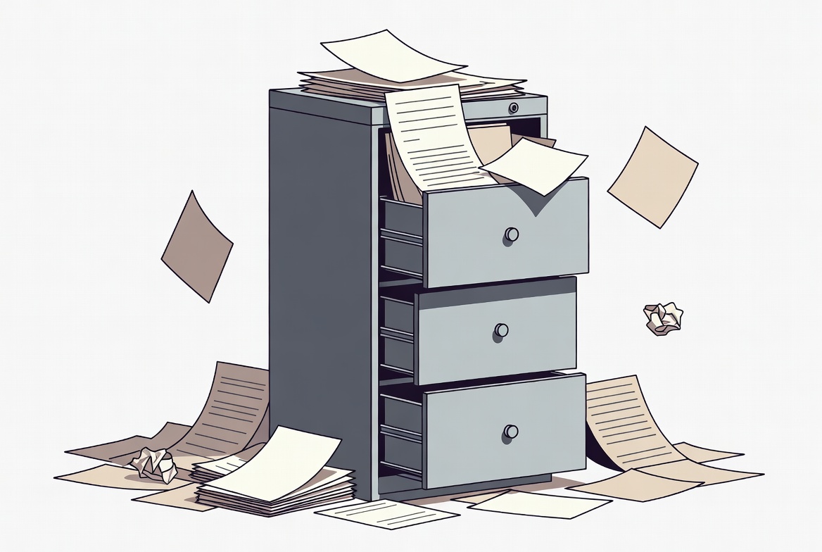 chaos, clutter, crumpled, disarray, documents, drawer, filing, filing cabinet, items, mess, office, office supplies, open, organization, papers, paperwork, scattered, storage, workspace, writing