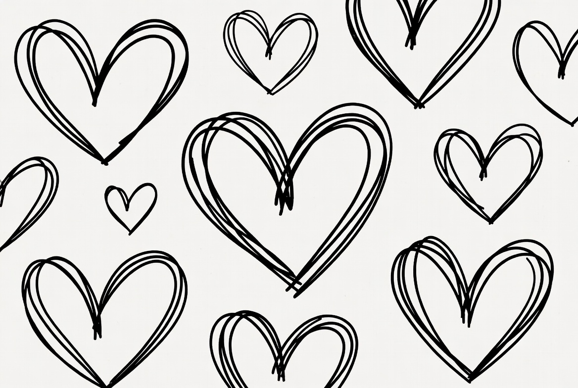 Many hearts are drawn in black on a white background. The design is simple and playful, suitable for various projects or themes.