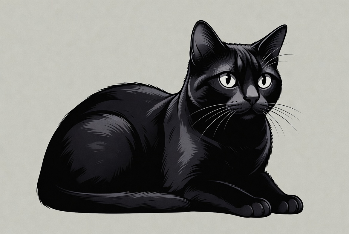Black cat resting on a light background