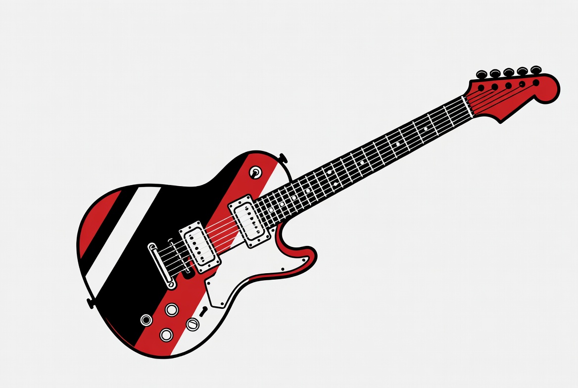 acoustic, art, black, bold, colors, creative, design, electric guitar, graphic, guitar, music, musical instrument, musician, outline, pickups, red, sound, strings, style, white