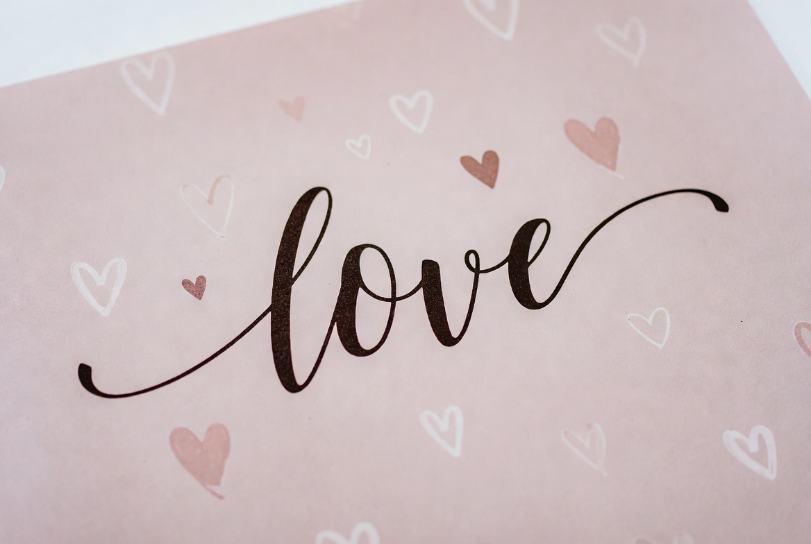 art, background, celebration, creativity, cursive, decoration, design, emotions, event, feelings, greeting card, hearts, light pink, love, message, patterns, romantic, simple, stationery, typography