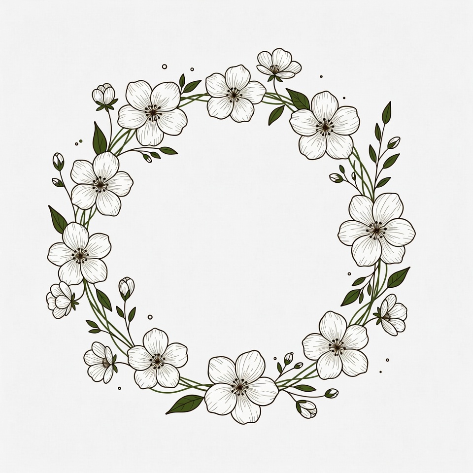 Floral circle with white flowers and leaves