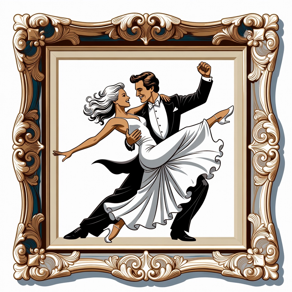 Couple dancing in a framed artwork