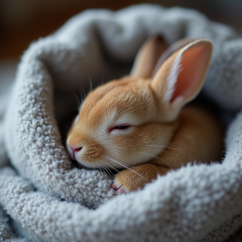 adorable, animal, blanket, brown, bunny, comfort, cozy, cuddle, cute, fur, indoors, peaceful, pet, rabbit, relaxed, rest, sleeping, small, soft, warmth