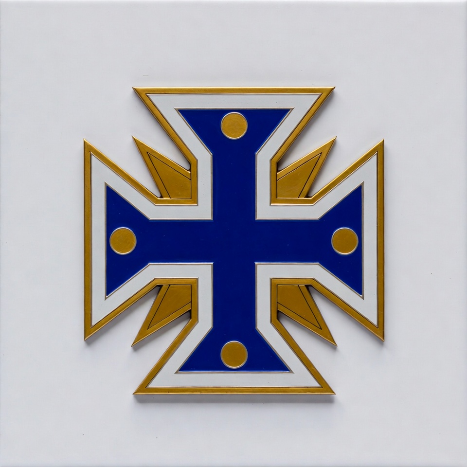 art, blue, bold, cross, culture, decoration, design, emblem, features, geometric, gold, heritage, historical, identity, order, square, stylized, symbol, tradition, wall