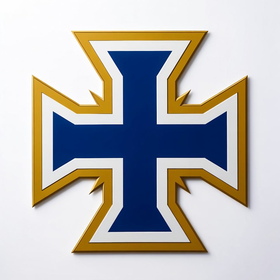 Cross emblem with blue and gold design