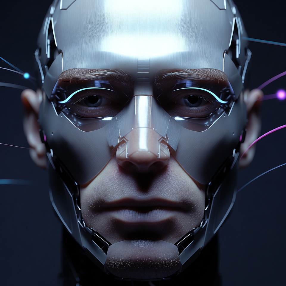 Futuristic robot face with digital features
