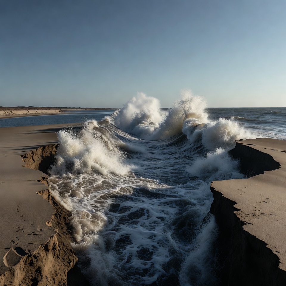 Waves crashing on sandy shore