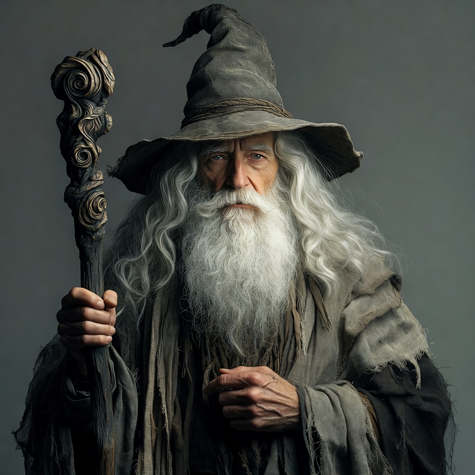 adventure, ancient, artisan, beard, character, cloak, dark setting, fantasy, figure, gray hair, lore, magic, mysterious, mythology, old man, portrait, solitude, staff, storytelling, wizard