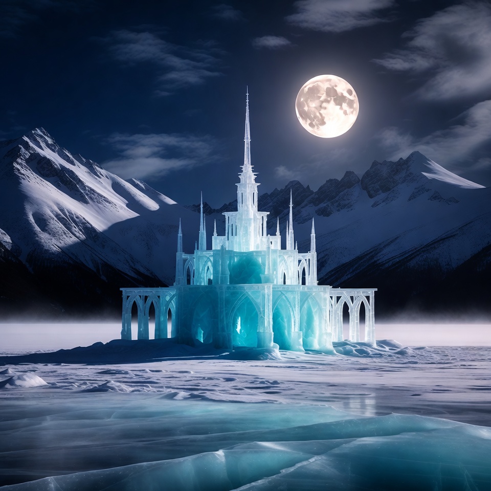 Ice castle under full moon
