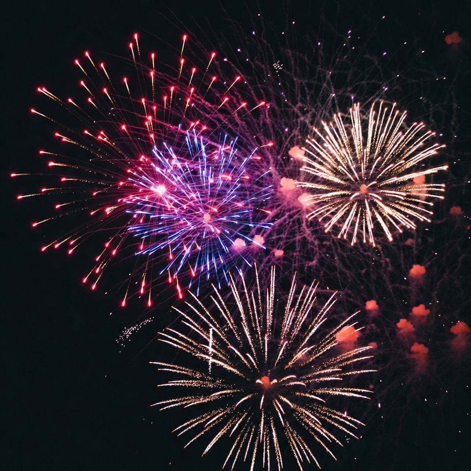Colorful fireworks light up night sky