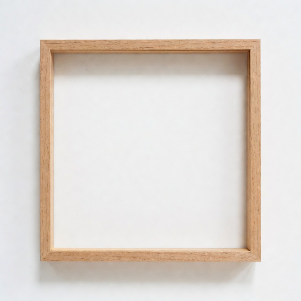 art display, blank frame, clean lines, decorative frame, empty frame, frame display, frame layout, home decor, indoor setting, interior design, minimalist design, modern design, simple frame, square frame, unfilled frame, wall art, wall decor, white wall, wood texture, wooden frame