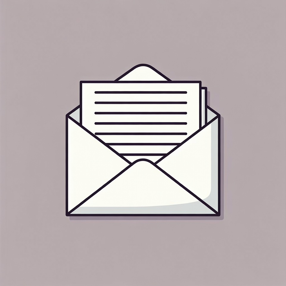 An envelope is open, showing a letter with lines inside. The background is simple and plain. The scene is minimal and direct.