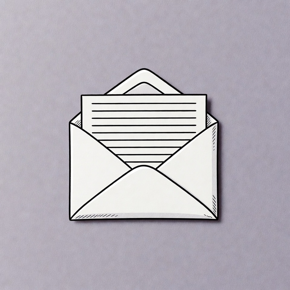 An envelope sits on a simple purple background, containing a letter inside. The letter has lined paper visible from the envelope.