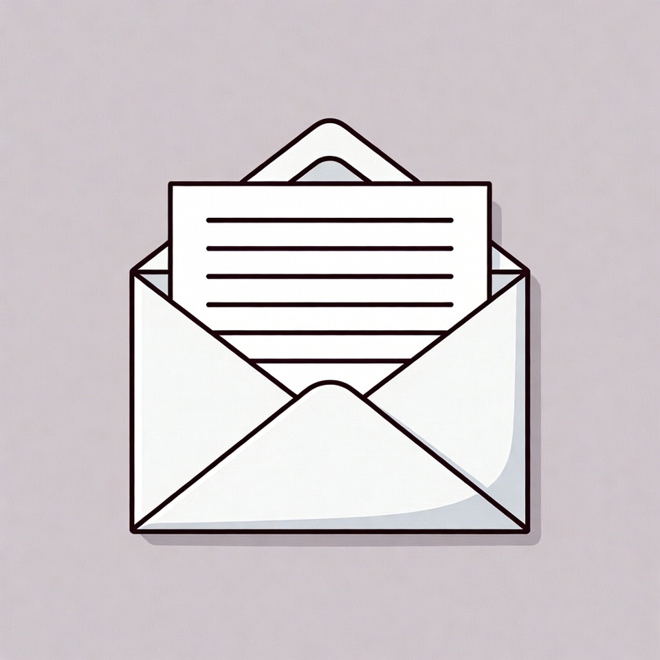An envelope sits open with a lined letter visible inside. The background is a solid color, highlighting the envelope and letter.