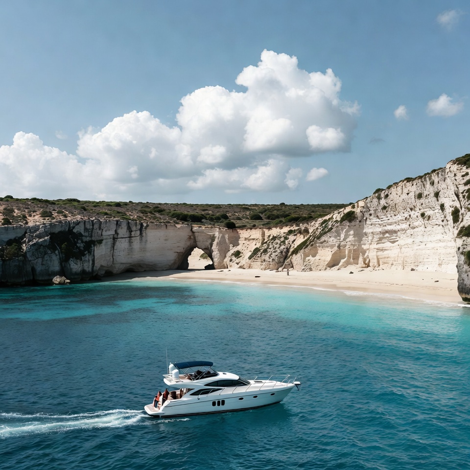 beach, boat, cliffs, coast, exploration, island, landscape, leisure, nature, ocean, outdoor, people, relaxation, sailing, sky, summer, travel, vacation, water, waves