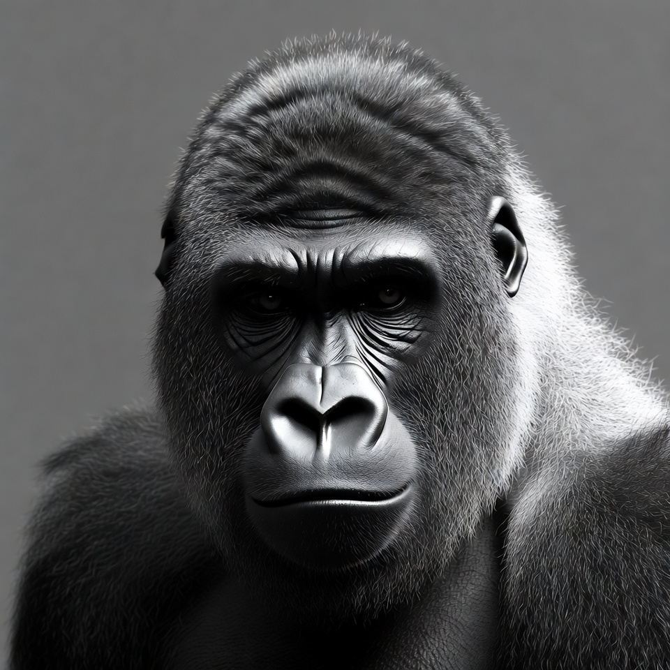 Gorilla portrait in black and white