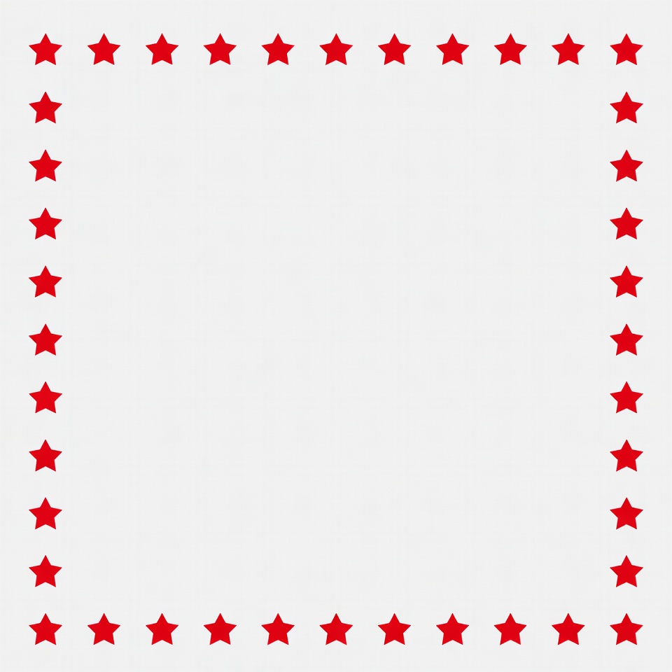 Red stars create a border design on a plain white background. This design can be used for various crafts or events.