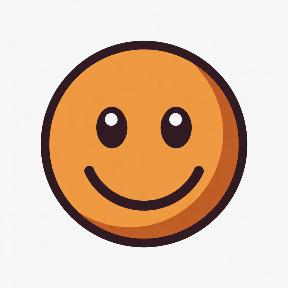 A round orange face with a simple smile and two eyes. It has a clean, flat style suitable for various uses.