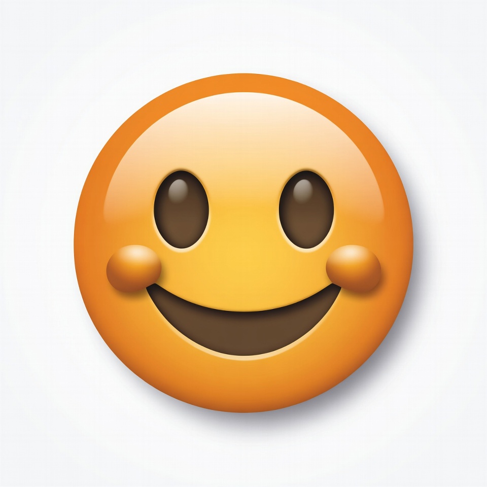 A round, orange smiley face with large eyes and a simple smile. It shows happiness and warmth. The background is plain and light.