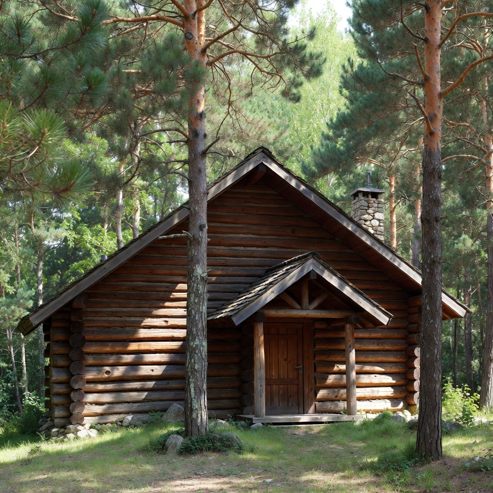 building, forest, greenery, home, landscape, log cabin, logs, nature, outdoor, roof, rural, rustic, scenery, shelter, structure, sunlight, tranquility, trees, wooden door, woods
