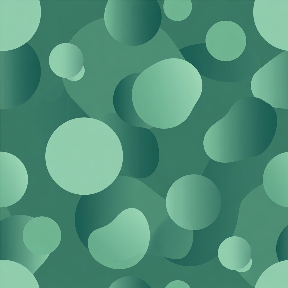 A design with various circles and shapes in green tones. The shapes blend together in an abstract manner.