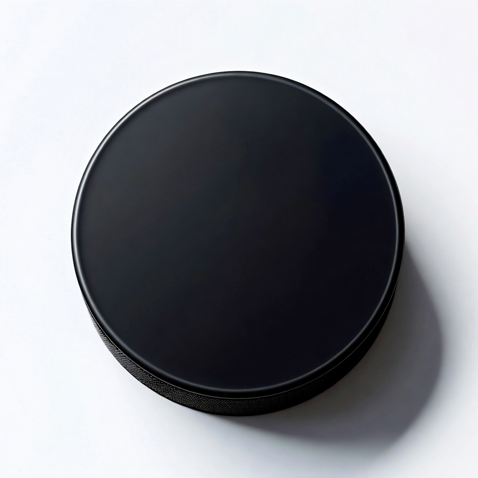 A round black object rests on a white surface. The object has a smooth texture and no visible markings. It is centered in the frame.