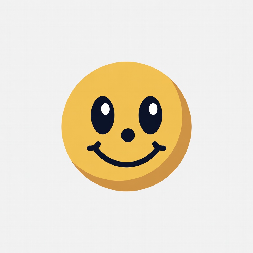 A yellow round face with a smile, black eyes, and a small nose. The design is minimal and cartoon-like, creating a cheerful look.