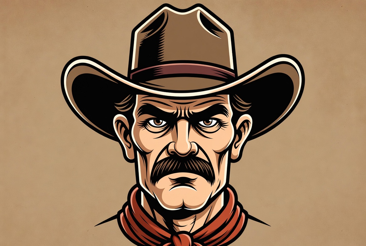 art, character, cowboy, draw, eyes, face, hat, illustration, line, man, mustache, portrait, ranch, rugged, scarf, serious, south, style, toughness, western