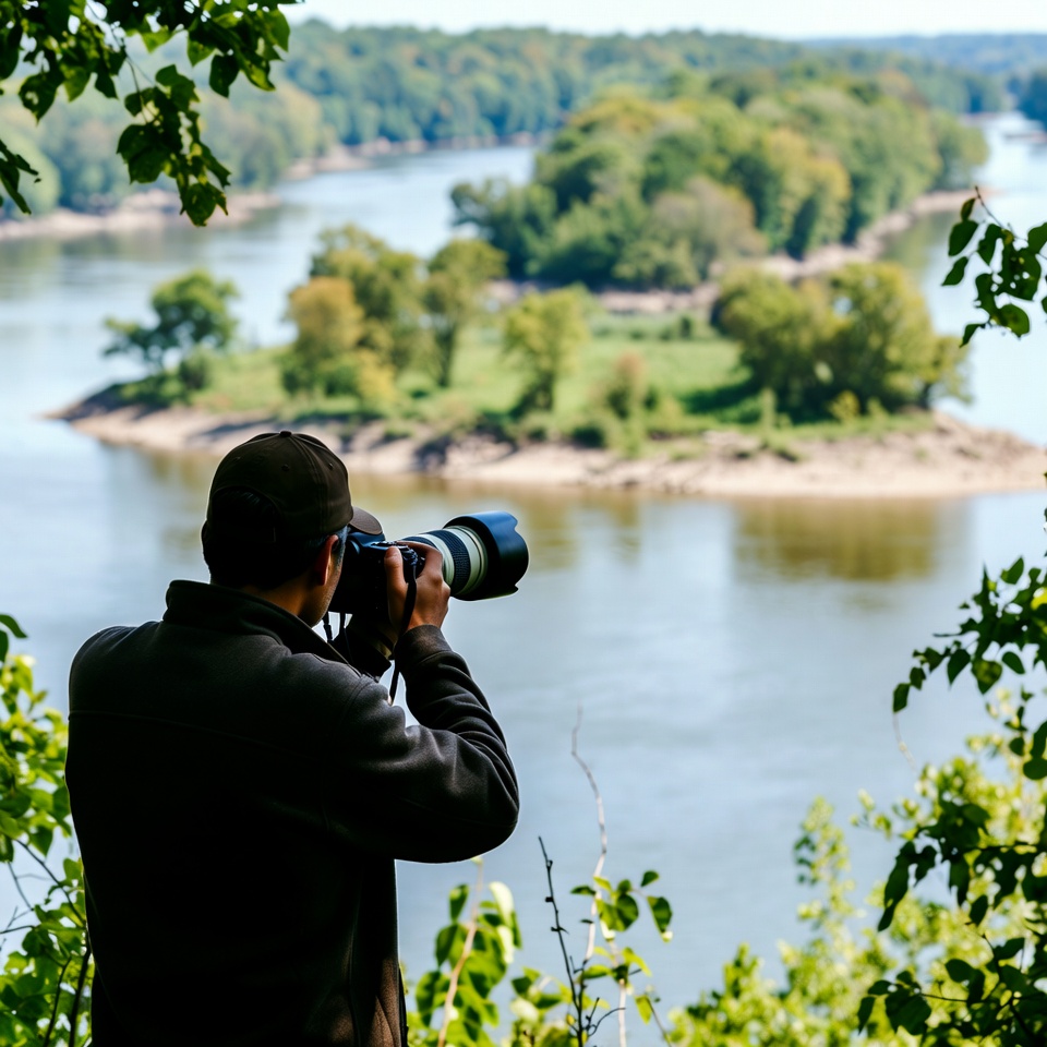 Photographer at riverside lookout point