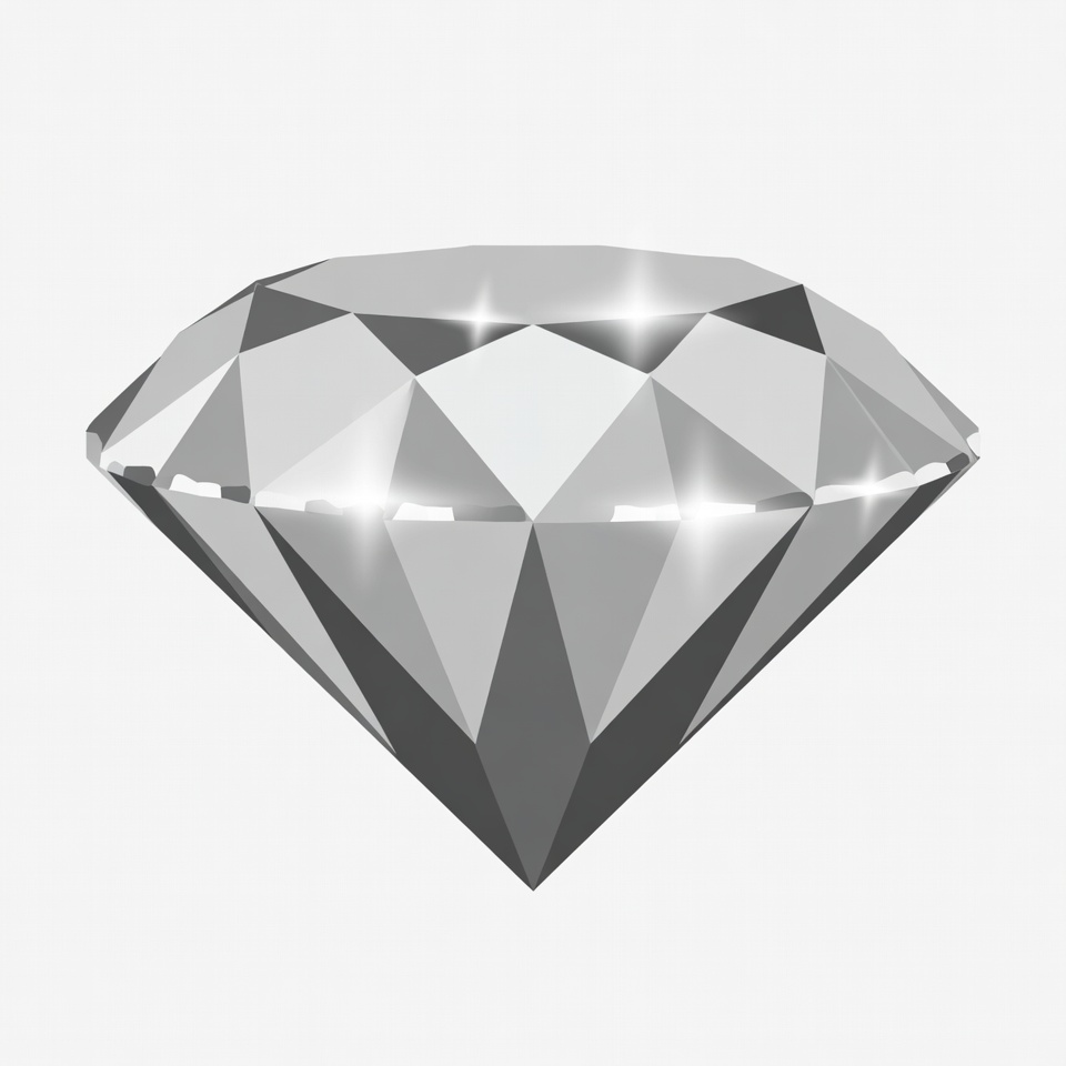 A diamond shape is shown with many facets reflecting light. It is set against a simple background to highlight the clear structure.