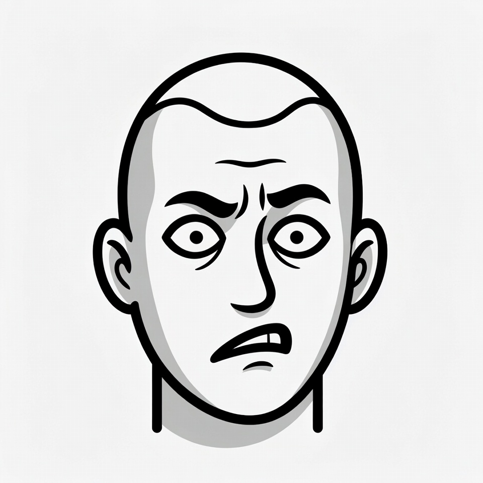 art, bald, character, confusion, design, disbelief, drawing, emotion, expression, eyes, face, features, human, illustration, line art, mouth, reaction, shocked, surprise, surprised
