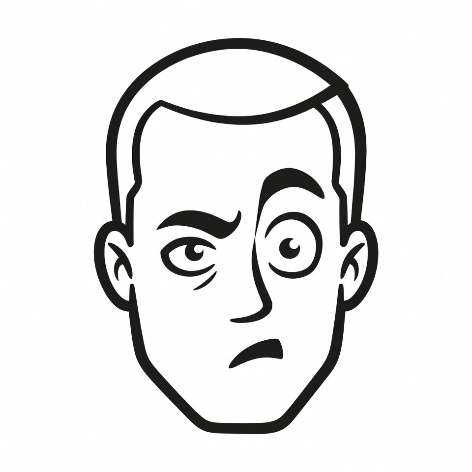cartoon, character, confused, design, emotions, expression, eyebrows, eyes, face, facial, feelings, head, humor, illustration, man, outline, reaction, stare, surprise, uncertainty