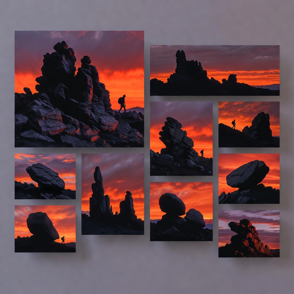 adventure, climbing, clouds, colors, evening, exploration, hiker, horizon, landscape, nature, outdoors, physical activity, rock formation, scenery, shadows, silhouette, sky, sunset, terrain, wilderness