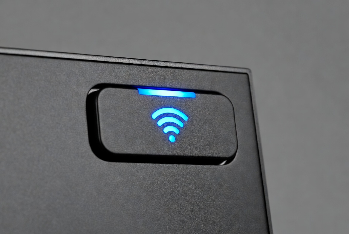 black, blue, button, close-up, connection, device, display, electronics, functionality, glowing, indicator, interface, light, modern, network, setup, signal, technology, wifi, wireless